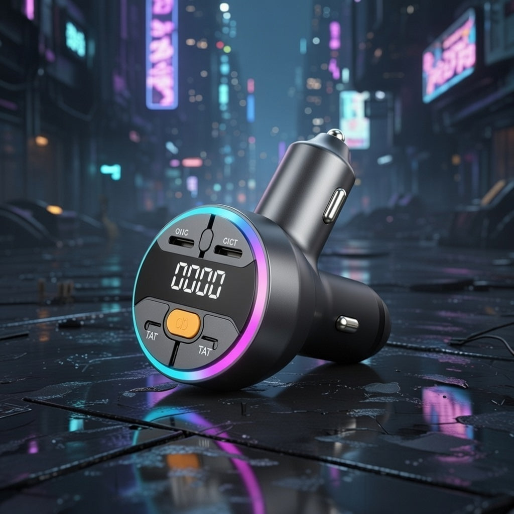 Car Charger with Music Play & Hands-Free Calls Dual USB + FM Transmitter Fast 3A Output