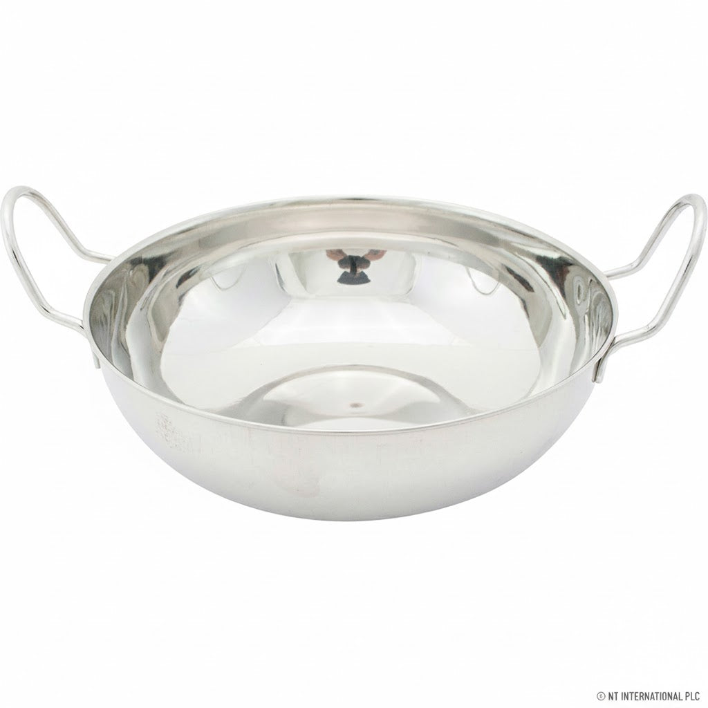 19cm Stainless Steel Balti Dish Kadai – Dual Handles, Polished Finish, Ideal for Cooking & Serving Curries