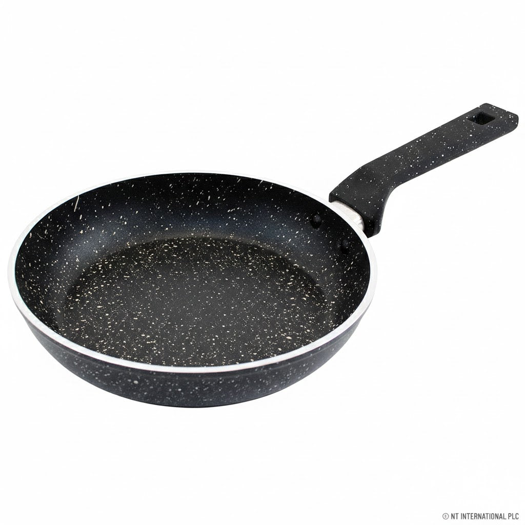 Constructed from heavy-gauge forged aluminium for excellent heat distribution and durability. The premium marble/stone vein non-stick coating allows for healthier cooking with minimal oil and easy food release.