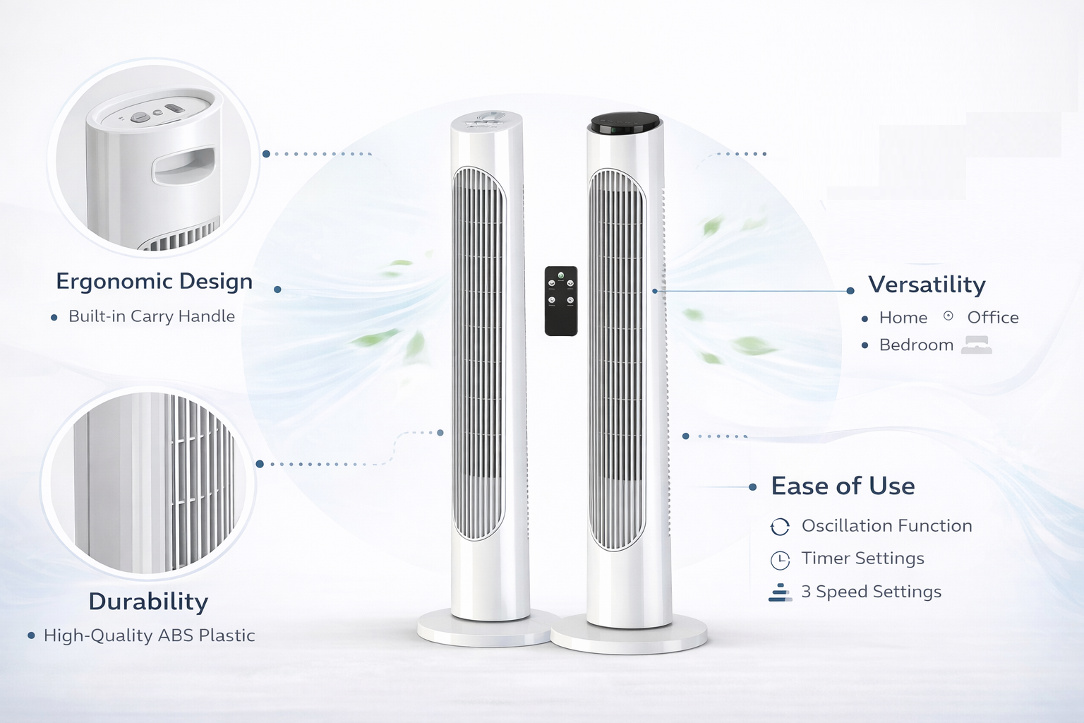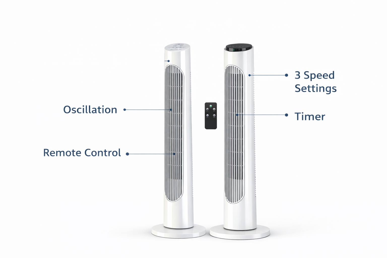 If the fan is going in a bedroom or living room, the remote control version is the right pick — adjusting the timer or speed while lying down or sitting on the sofa makes a real difference day to day. For a desk, kitchen, or hallway where you are always nearby, the standard version gives you everything you need at a lower cost.