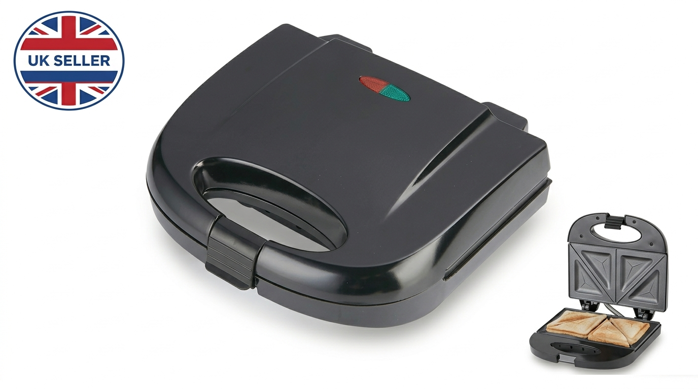 750W Sandwich Maker | Non-Stick Plates | Dual Indicator Lights | Lid Clamp | White or Black